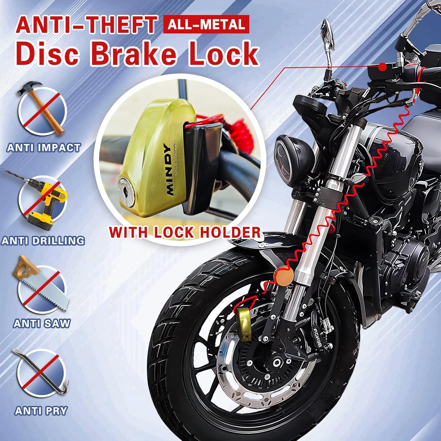 Mindy Heavy Duty Anti-Theft Bike Disc Lock With Frame / Holder Easy To Mount On Motorcycle – Zinc Alloy Wheel Disc Lock for Motorcycle/Bicycle – Mini Lock with Key, Waterproof Anti-Drilling, Anti-Sawing, Anti-Prying Security Lock